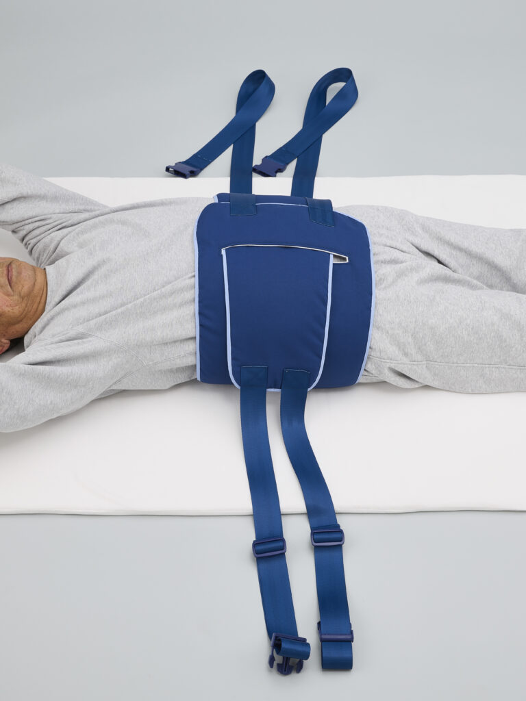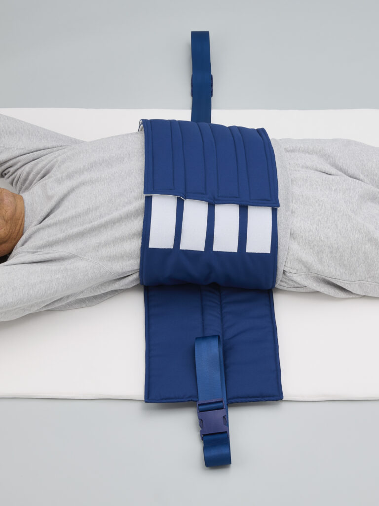 クッション性を持たせ、身体を優しく包む体幹抑制帯。